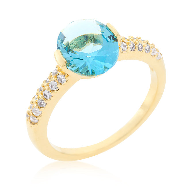 Feminine and elegant. Simple and sophisticated. Fashioned in luminous cubic zirconia this engagement ring is a lovely addition to any collection. 18k plated gold is achieved using an electroplating process that coats the item with heavy layers of 18k Yellow Gold and color-treated to display a perfect 14k Hamilton gold color.