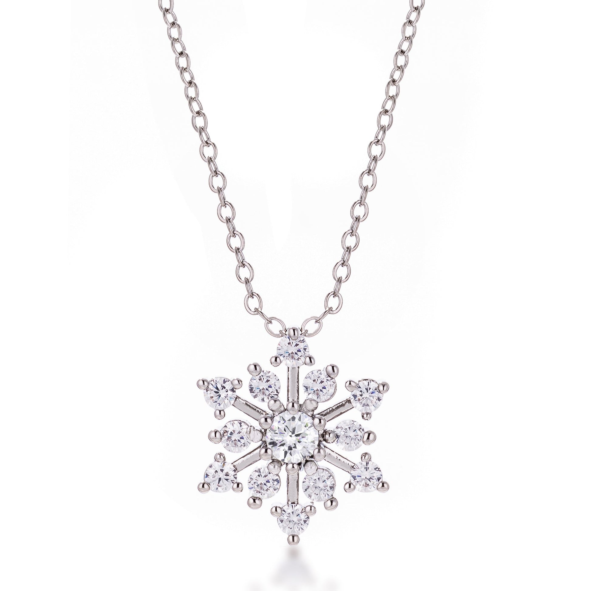 Embrace the winter wonder with this CZ snowflake necklace. This delicate pendant captures the intricate symmetry of a snowflake adorned with sparklingclear CZ.
