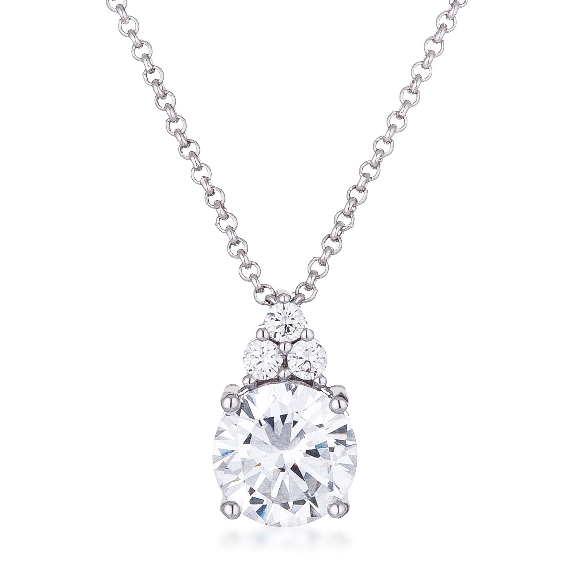 Simple Rhodium Plated 9mm Clear CZ Pendant