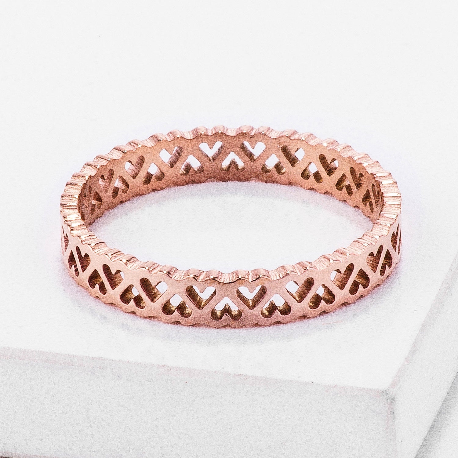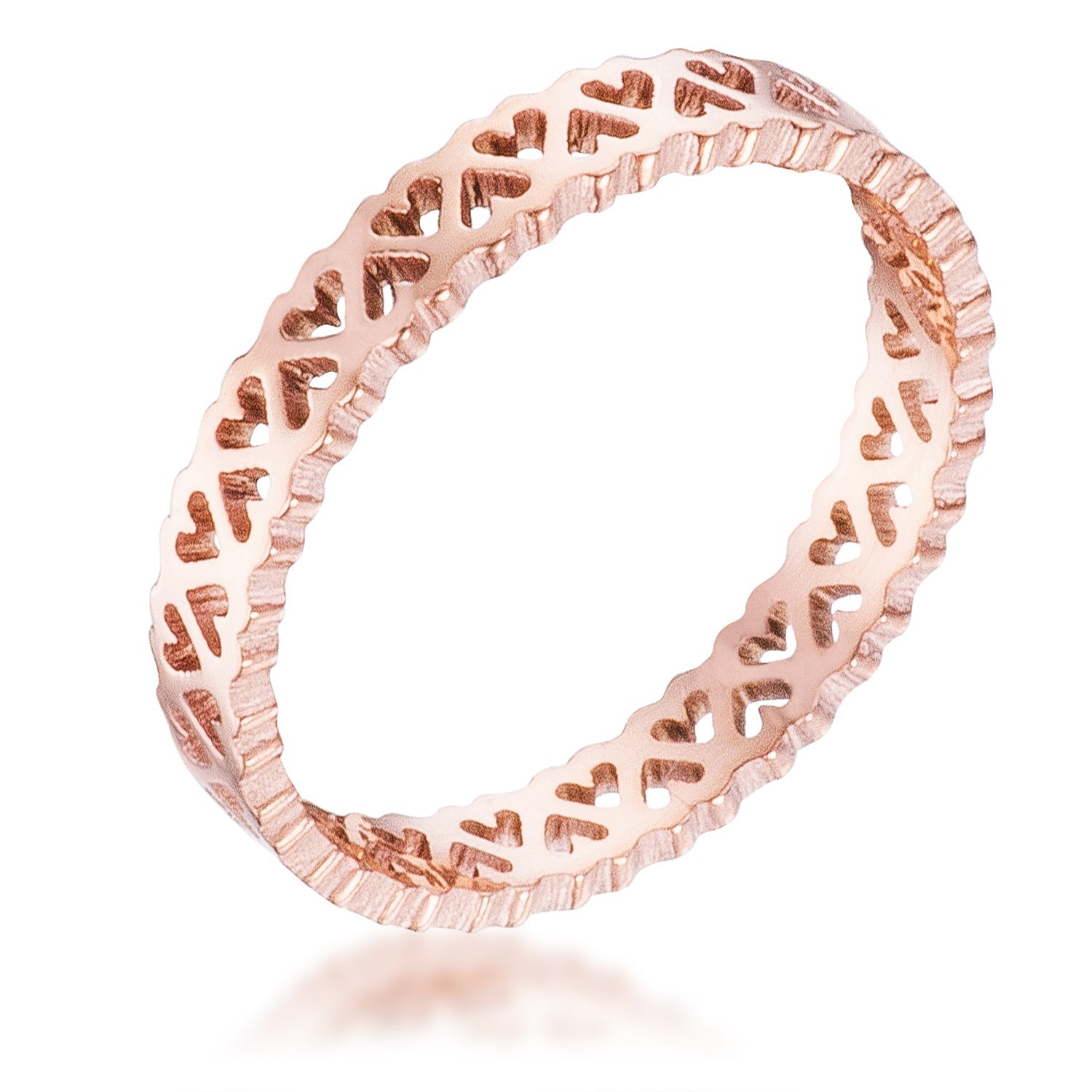 Stainless Steel Rose Goldtone Eternity Hearts Ring
